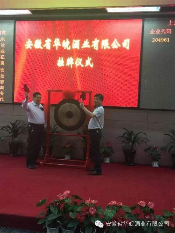 5月19日上午9:18分安徽·六安浙江商会副会长单位、安徽省华皖酒业有限公司在上海市股交中心举行隆重的挂牌上市仪式!华皖酒业董事长高友道等发表了热情洋溢的讲话!
